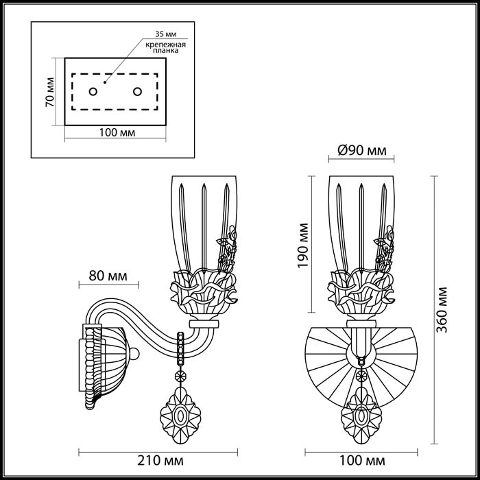 Материал плафона | Стекло | |