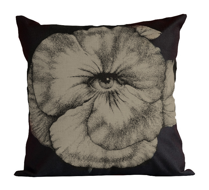 На этой чёрной подушке изображен необычный цветок, с глазом в центре. Вам знаком этот взгляд? Конечно же, это глаза прекрасной Лины Кавальери — музы известного итальянского дизайнера Пьеро Форназетти Piero Fornasetti. Несомненно, эта подушка станет эксклюзивным украшением вашего стильного интерьера или оригинальным подарком.